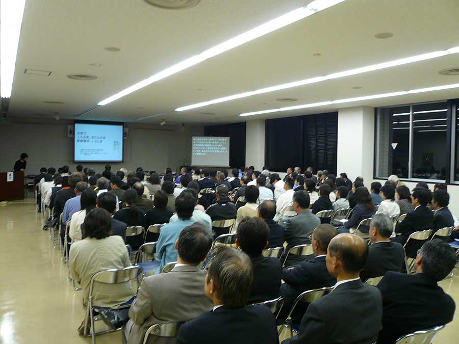 また、10月30日(木)前原市役所で開催された糸島1市2町合併住民説明会(最終回)には、はじめてパソコン要約筆記が登場。説明者である松本嶺男前原市長も「私の糸島弁も要約筆記していただけるんですか?」とのジョークも飛び出すなど、要約筆記の重要性を訴えてこられた県難聴者中途失聴者協会前原支部の皆様の努力が実った成果ではなかったでしょうか。