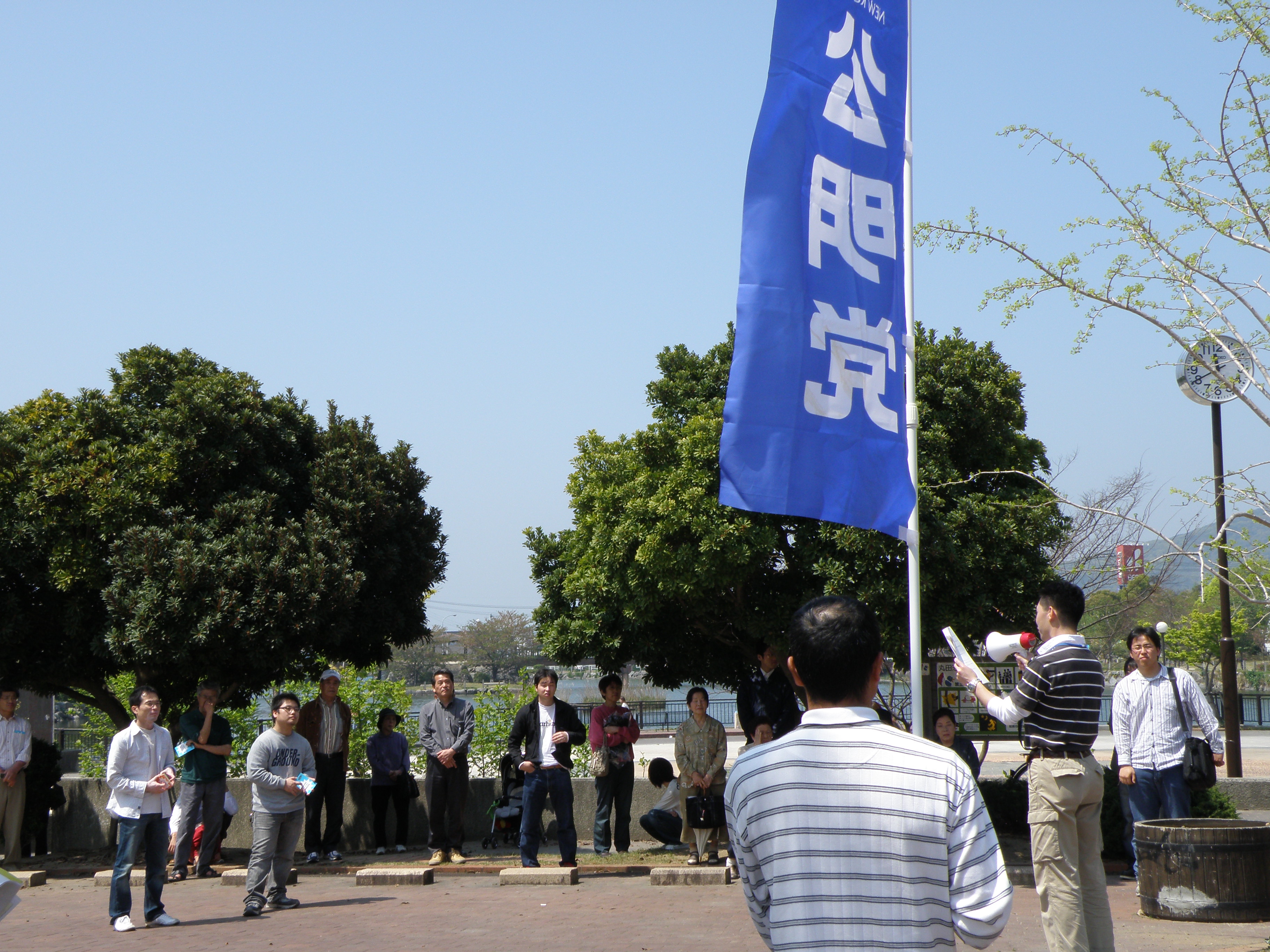 4月12日(日)午前11時30分前原市丸田池公園で、公明党糸島支部青年局主催によるVOICE2009街頭演説会が開催されました。
