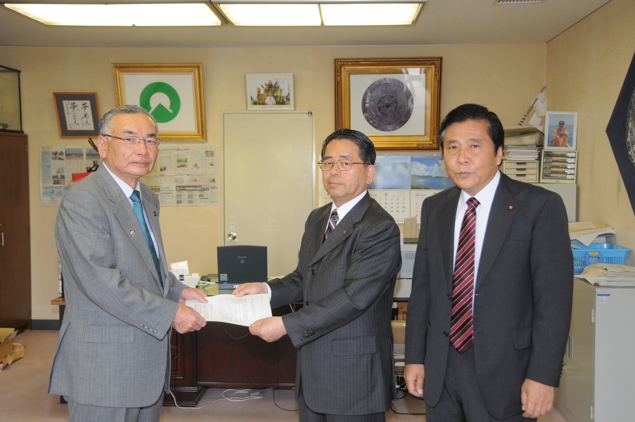 松本嶺男前原市長に、太陽光をはじめとする再生可能な新エネルギーの積極的な導入に関する申し入れ