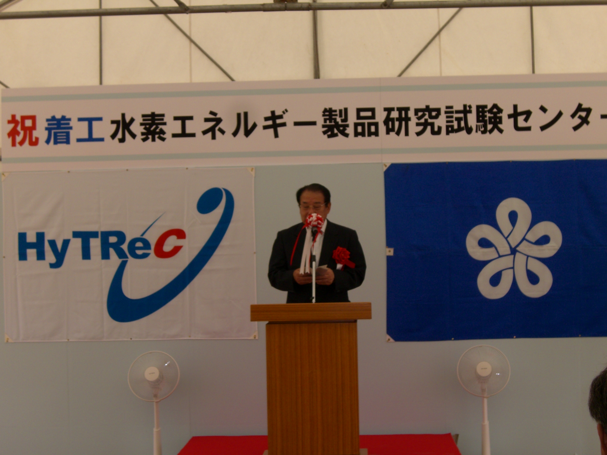 福岡県の麻生渡知事は「すぐ隣には九州大学、ここには世界最先端の水素材料関係の研究所があり、これと一体となって、ここでの製品試験・研究を通して非常な広範囲の水素社会ができていくわけで、環境問題、エネルギー問題を考えると、水素社会は最も可能性のある将来の方向である。それを目指し、私どもは大いに努力し、世界に新しいわれわれの文明を作る努力をしていきたい。」と挨拶された。
