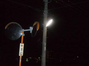 早速、ご提案された方と明るくなった防犯灯の前にお住まいの方に会ってきました。防犯灯の前にお住まいの方に、「明るくなって、ご迷惑かけていませんか」とお尋ねしたところ、「昨日から明るくなっていることを知りませんでした。迷惑だとか思ってません。今まで自転車と自転車、自転車と歩行者との追突事故も多くて心配していました。明るくなって本当に良かったです」とのご返事に安堵しました。