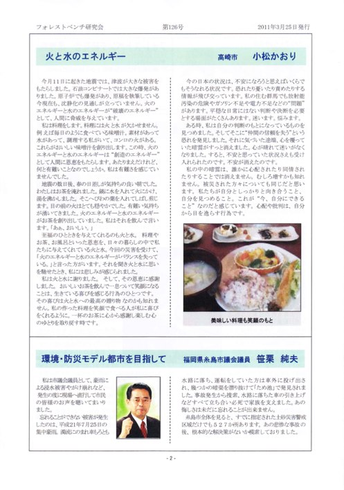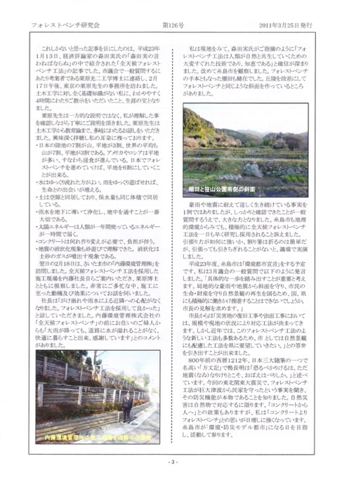 フォレストベンチ会報「STEP」第126号(平成23年3月25日発行)に