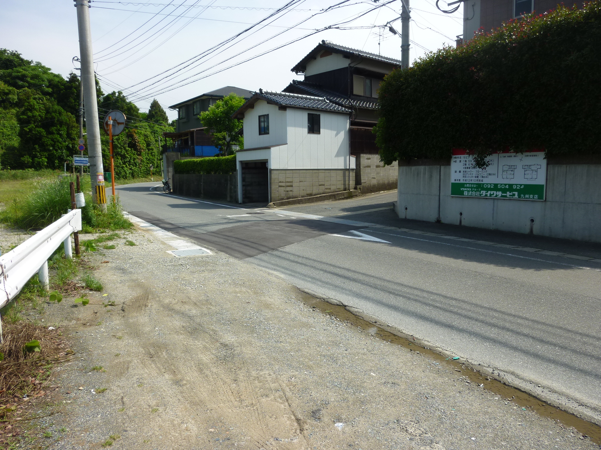 5月30日(月)午後、糸島市篠原2丁目にお住いの方から、約2年前「大雨の時、自宅前の市道が冠水して、車庫が30mほど冠水し、非常に困っています」との相談を受けていた。