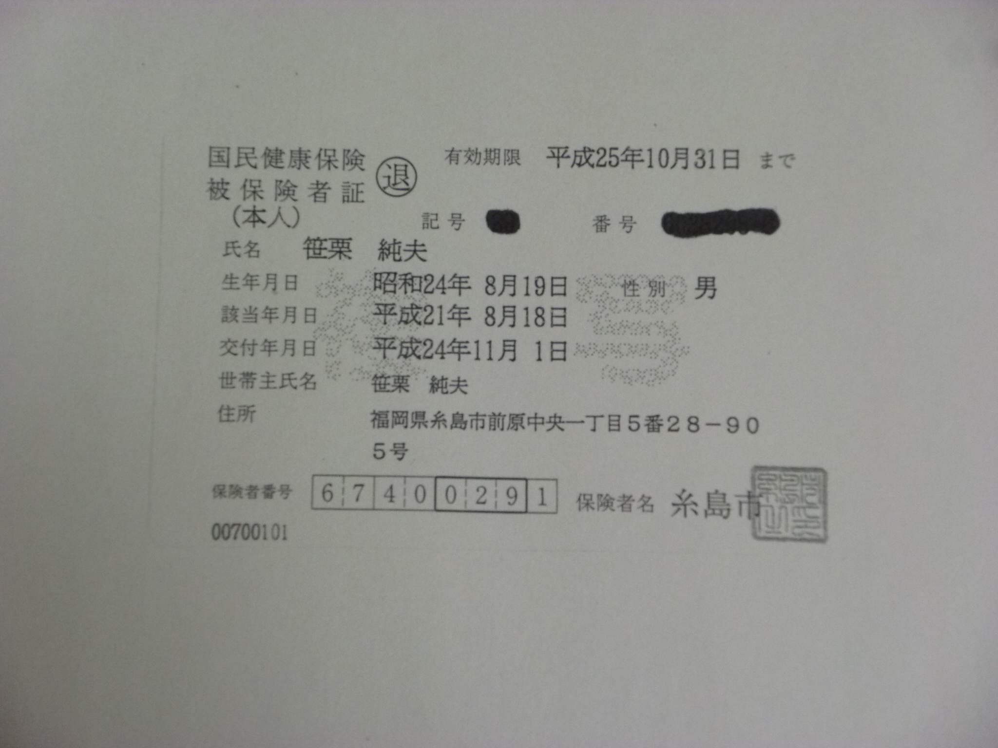糸島市は平成22年度から国民健康保険証カードの切り替えが11月1日になっています。