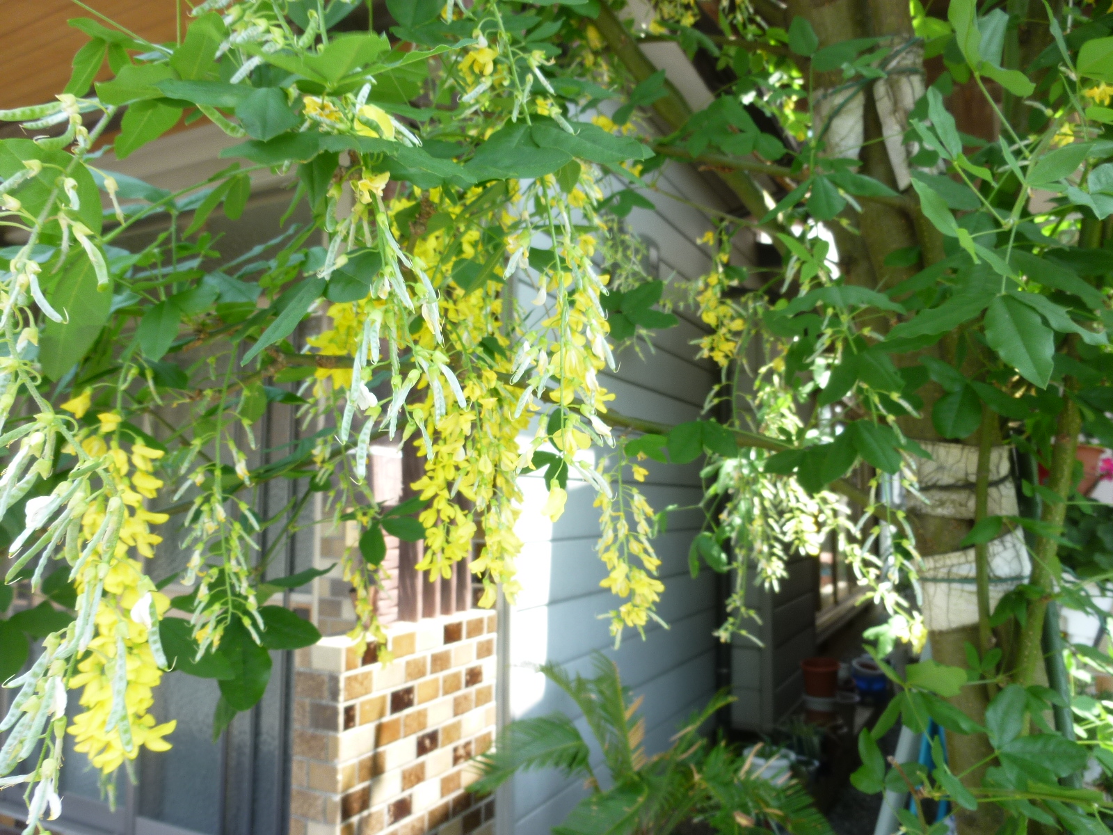 今日、訪問したお宅の玄関に黄色い藤の花が咲いていました。