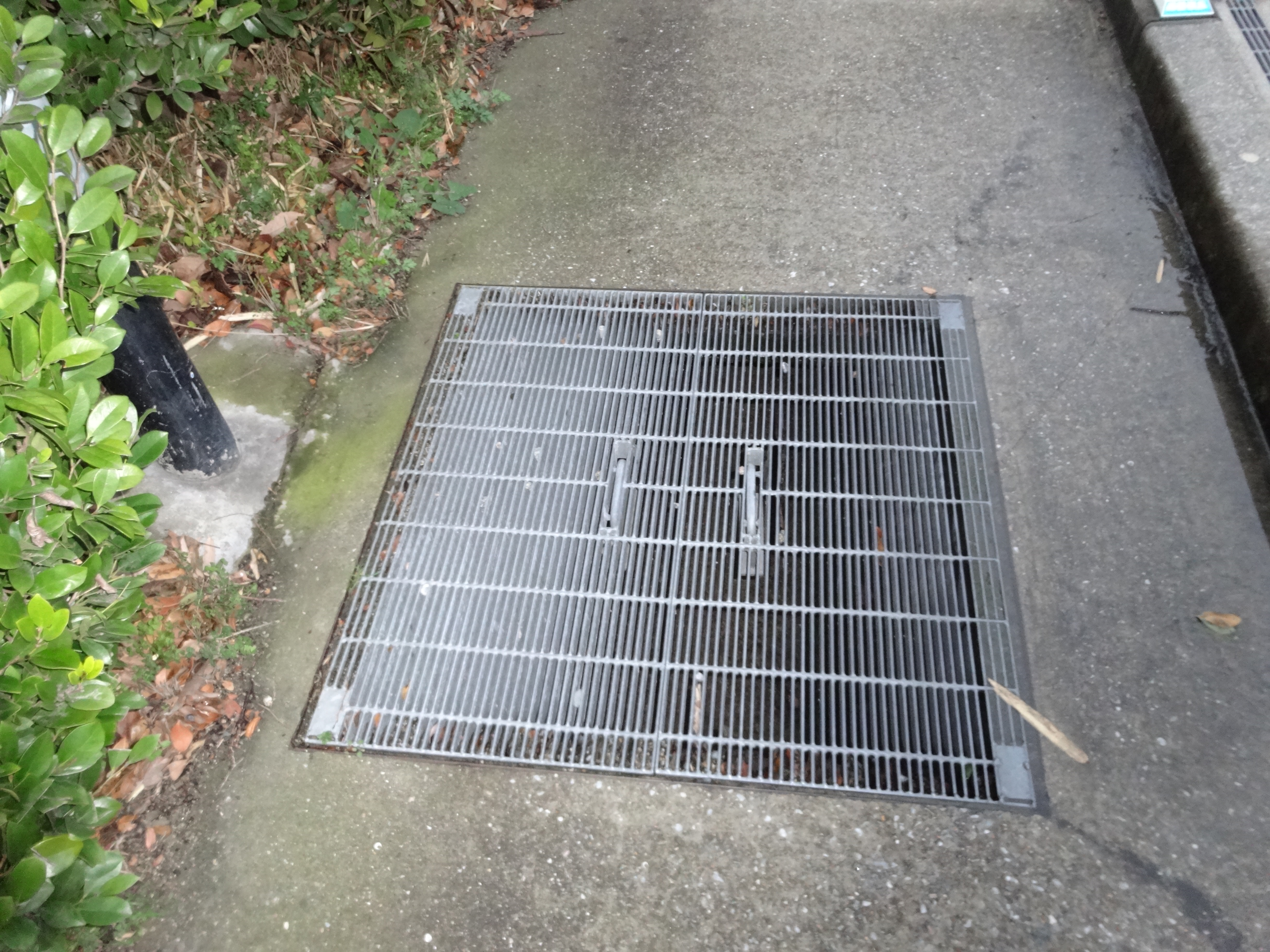 ザラザラ、イボイボ模様を施した防止滑り止め加工付きのグレーチングに交換が必要であると痛切に感じました。