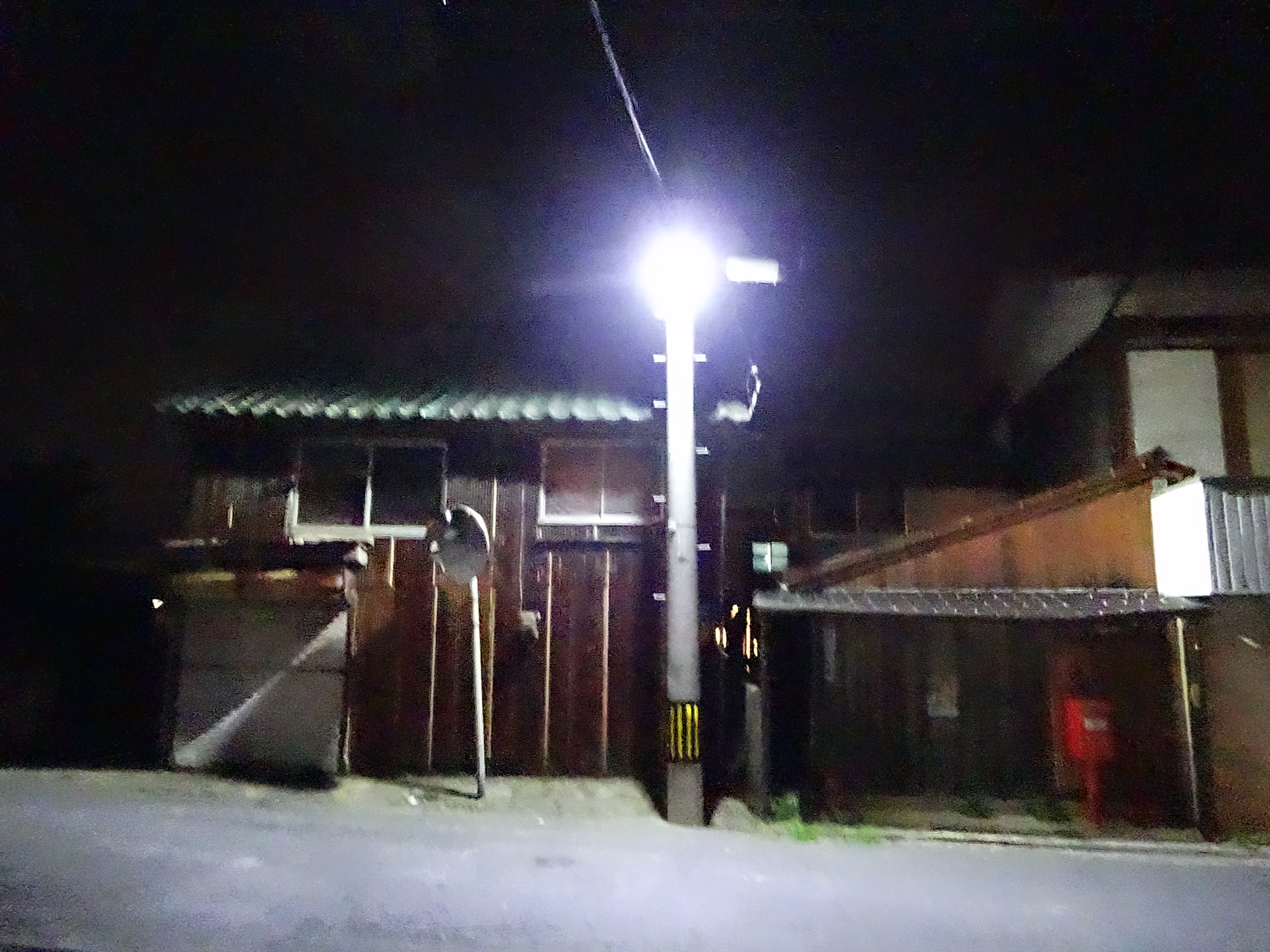 久方ぶり、夜現地を訪れました。眩いばかりに路上を照らしていました。新設場所近くにお住いの方の設置許可を取り付けていただき、行政につないでいただいた区長さんに感謝申し上げます。