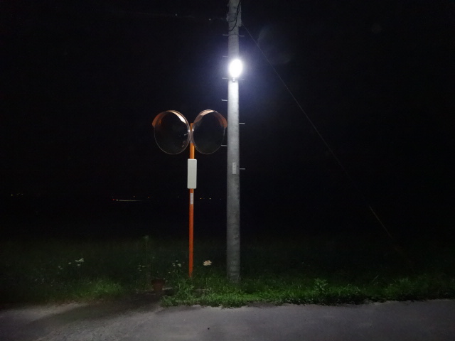 「昨夜(10日)、担当の係長が現場に赴き移設完了と照度、危険個所を照らしだしているか確認して参りました。行政区長さんや危険個所であることを進言していただいた御本人にお会いし非常に、喜んでいただきました」との報告をいただきました。非常に嬉しい限りです。