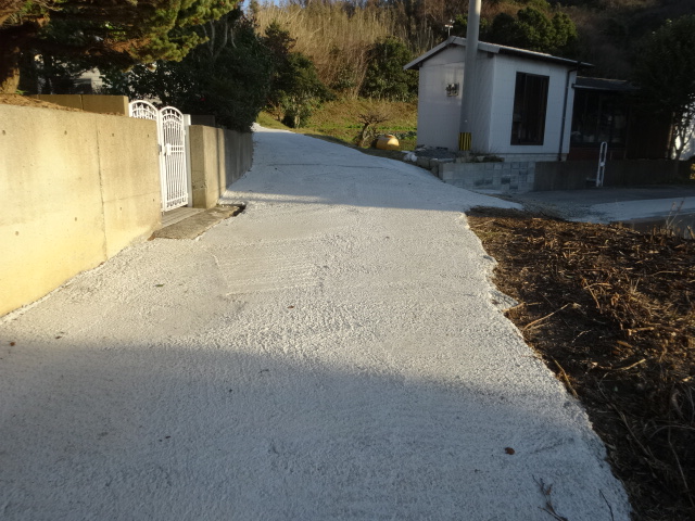 ご相談をお受けしていたお宅を訪問。11月中旬に生コン11立方メートルが現物支給され、依頼者やご近所の方が、力を合わせ砂利道からコンクリート道にされました。
