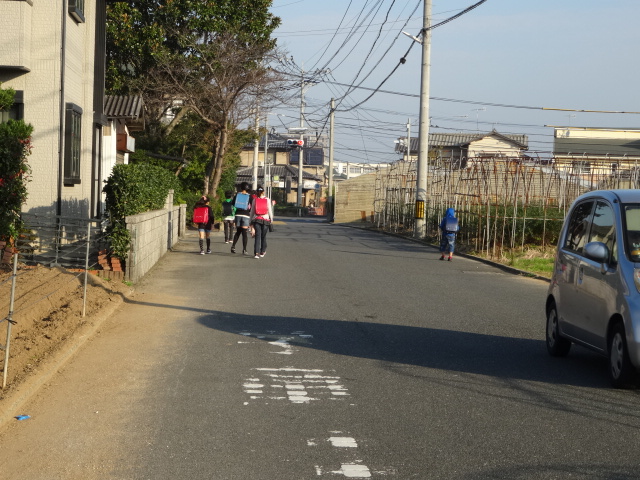 昨年の10月、前原南校区の保護者から「糸高南交差点に向って通学している小学生がグリーンベルトもなく、学童注意の道路標示も消えかかっているので現場を確認して欲しい」との連絡を受け、翌日、登校時間帯に現場を確認しました。併せて、登校時間が終わったと住宅街の外れまで歩いて危険個所チェックを行いました。