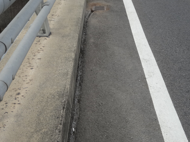 国道202号線多久川橋路側帯水溜り解消対策が完了