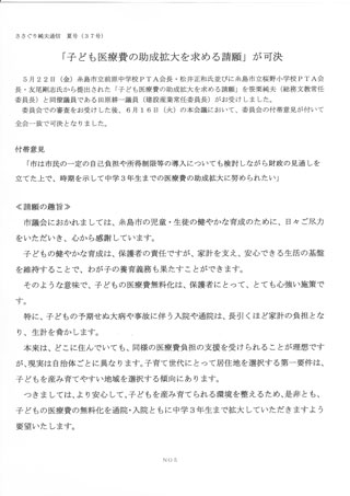 公明新聞:平成21年8月31日(月)号「ヒブワクチンに助成を 市長に早期実施を要望」