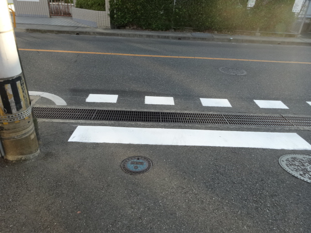市道から県道に出る三叉路に太い停止線を引く