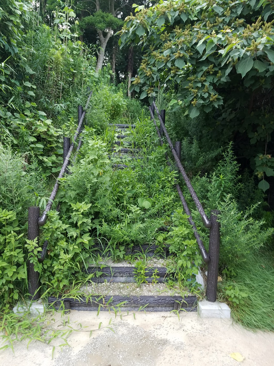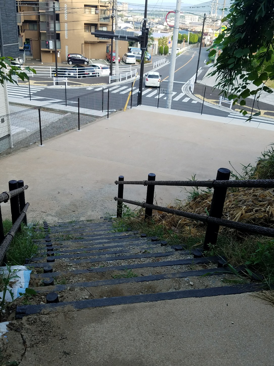 お伝えした課長自ら現場に出向き、確認され雑草の草刈りを指示していただき、綺麗な階段に様変わりしました。今は熱帯夜が続いていますが、涼しくなったら市民の方に散歩を楽しんでいただけたらと願っています。