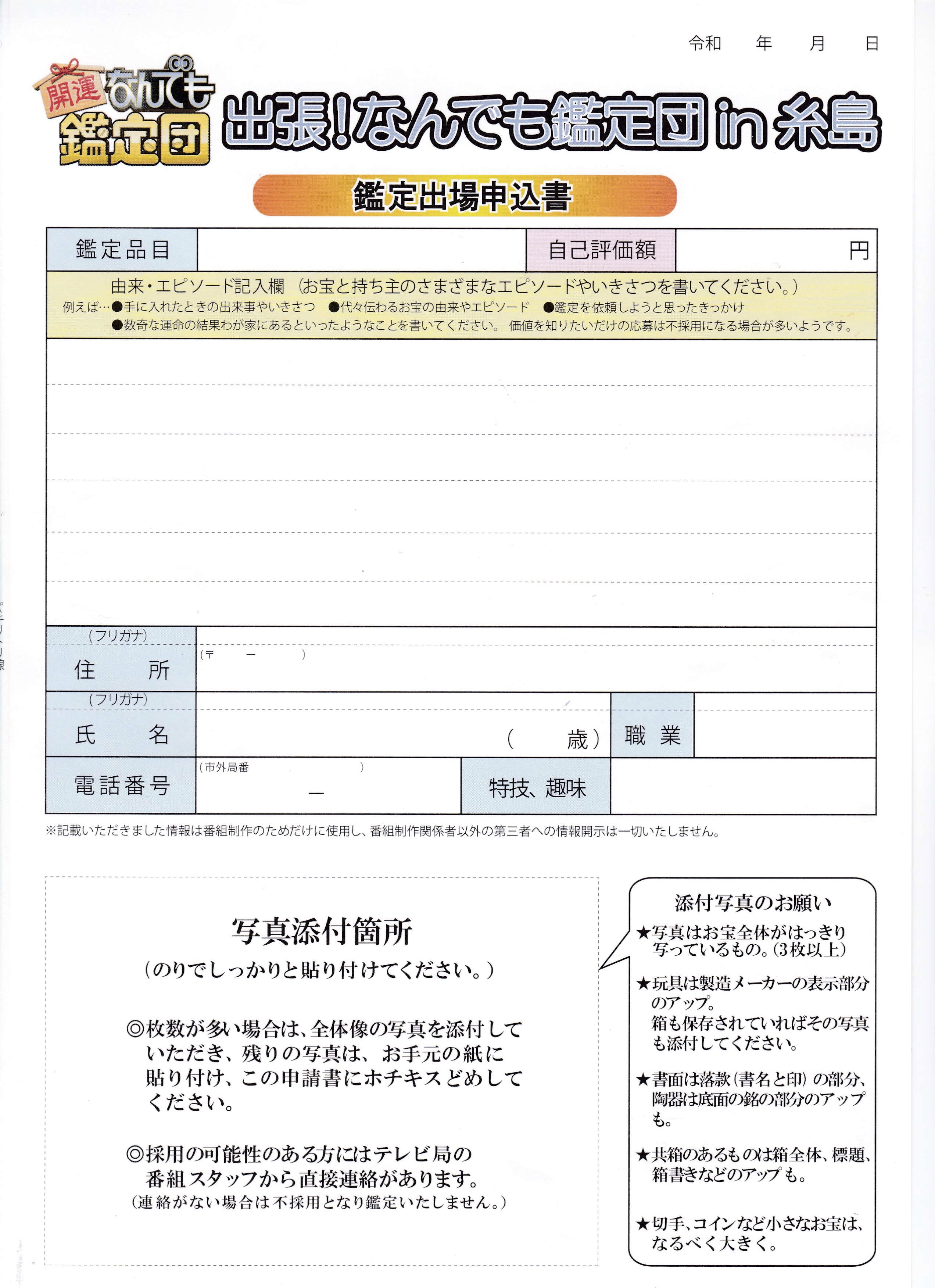 6月1日号の「広報いとしま」と併せて、開催案内チラシと鑑定出場申込書が全戸配布されました。