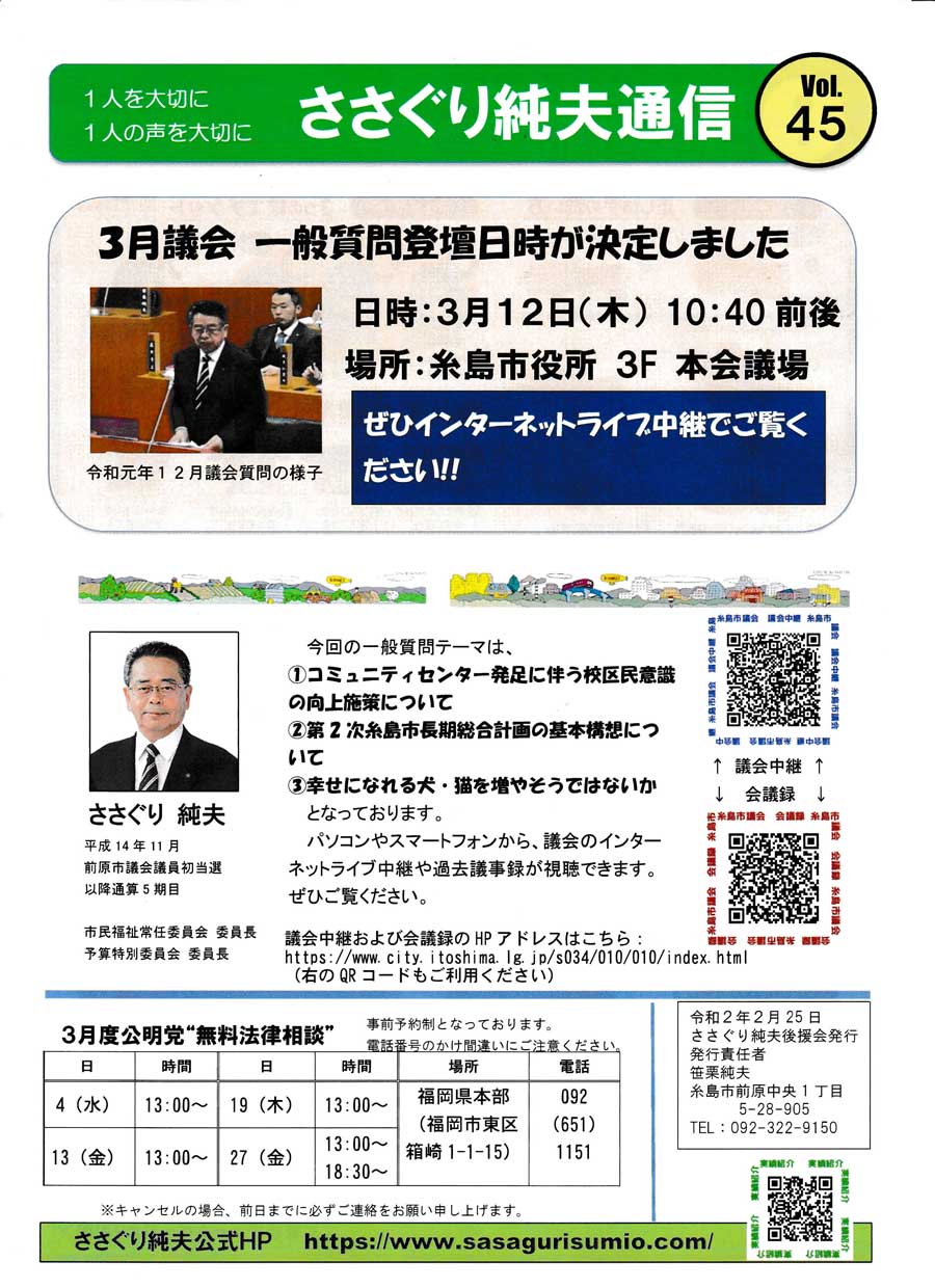 「ささぐり純夫通信」vol.45」 を発行しました。