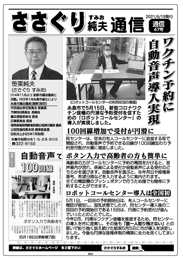「ささぐり純夫通信」vol.47」 を発行しました。