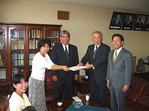2. 平成15年5月2日前原市長に「子育て支援センター」の早期設置を願う630人の署名と共に「前原市子育て支援センターの整備に関する陳情書」を提出し、早急に子育て支援センターを整備されるとともに、専門職員の配置を含めた子育て支援体制を整えていただくよう要望しました。