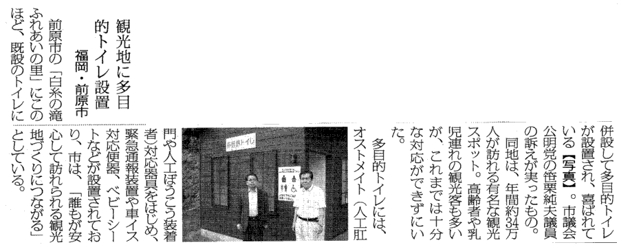 公明新聞:平成20年10月10日(金)号に「観光地に多目的トイレを設置」として記事が掲載されました。